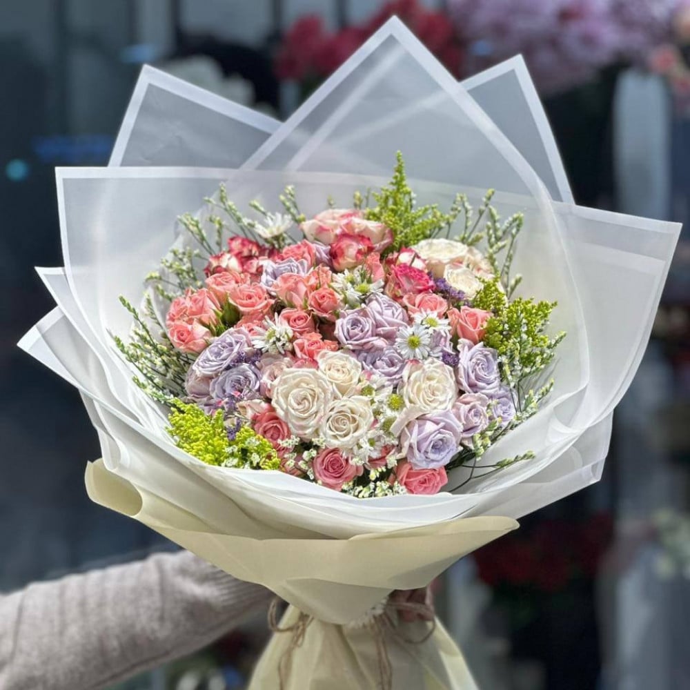 ، تخيل تهدي صديقتك باقة ورد ملونة، والورد يضيف لمسة من الجمال الطبيعي. أكيد بتكون فرحتها مضاعفة.